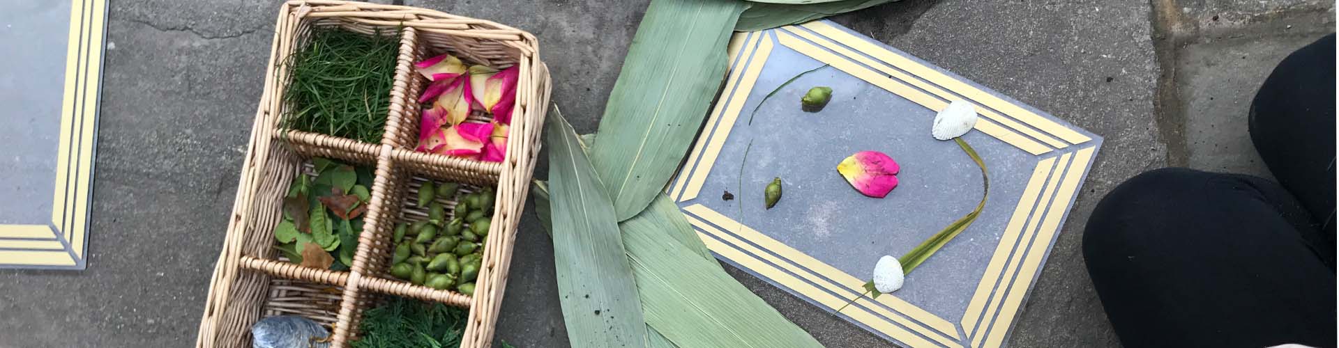 What you will need: various colourful natural items, a blank canvas, painting tools- sticks, brushes etc and a pestle and mortar.